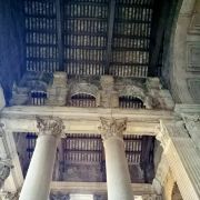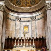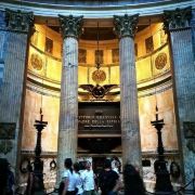 又译万神庙、潘提翁神殿,是至今完整保存的唯一-座罗马帝国时期建筑,始建于公元前27-25年,由罗马帝国首任皇帝屋大维的女婿阿格里帕建造,用以供奉奥林元亚山上诸神,可谓奥古斯都时期的经典建筑。公元80年的火灾,使万神殿的大部分被毁,仅余一长方形的柱廊,有12.5米高的花岗岩石柱16根,这一部分被作为后来重建的。