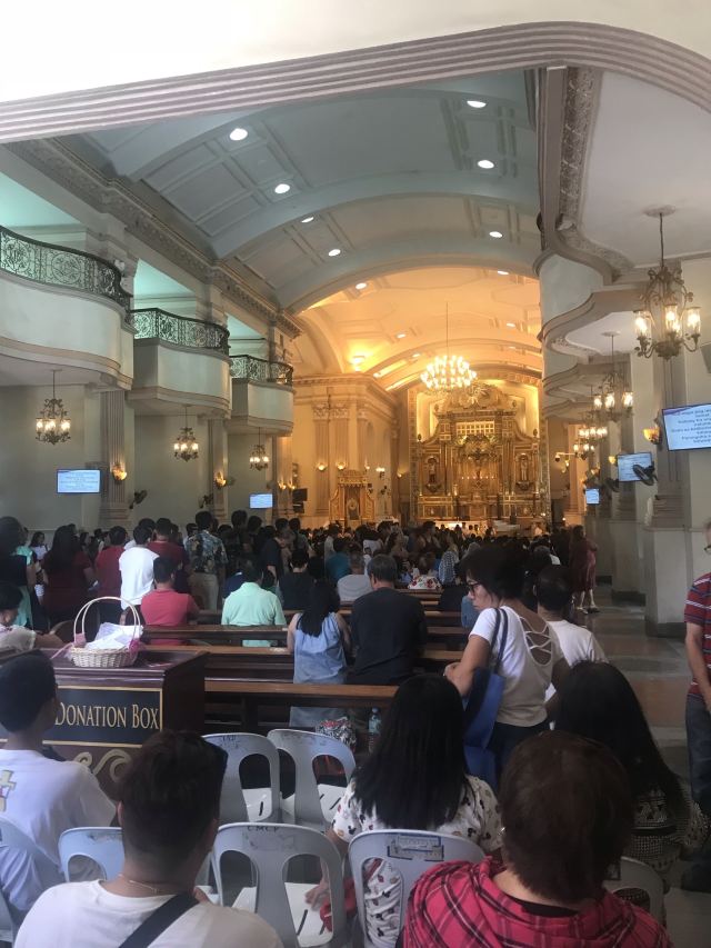 宿雾大教堂距离圣婴教堂一个街区,是一座较新的教堂。和圣婴教堂略显颓废的年代感相比,这里很整洁、肃穆、简单,融合了现代简约派和古典教堂的风格。