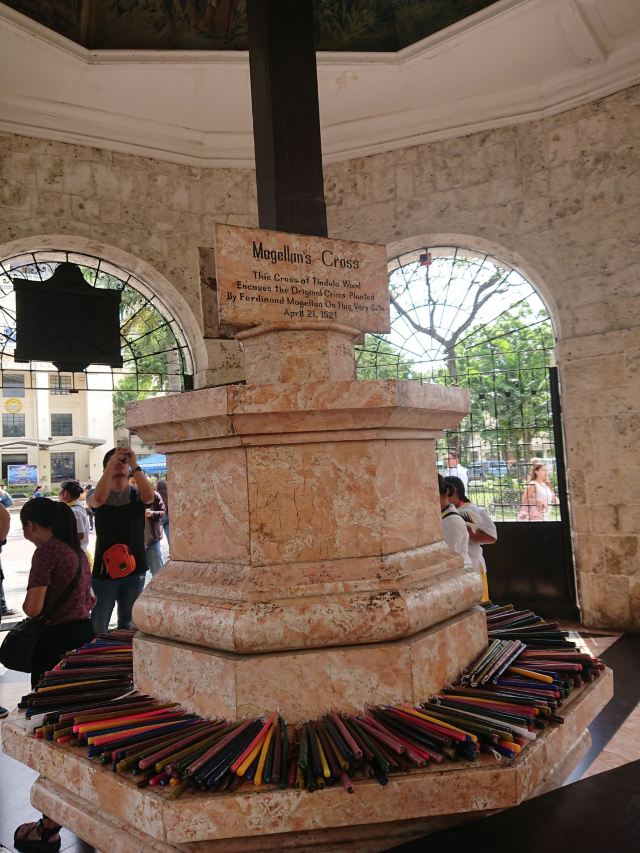 其实上面的十字架时候来竖立的,原始的十字架应该被封在了里面,木头做的应该已经坏掉了吧。最后麦哲伦也死在了宿务,攻打对面其他部落的时候,真是让人惋惜。