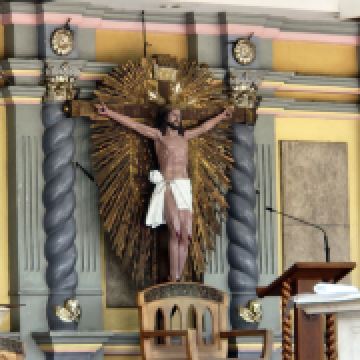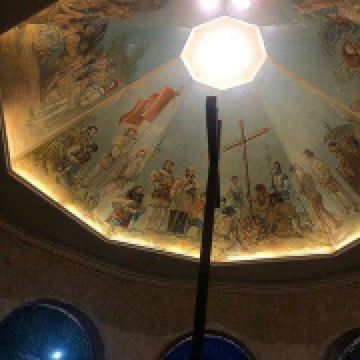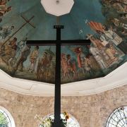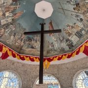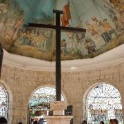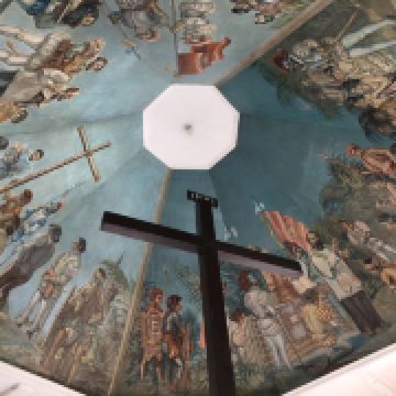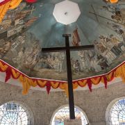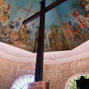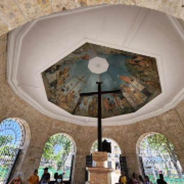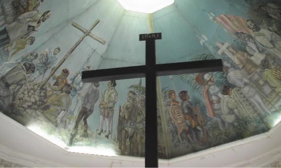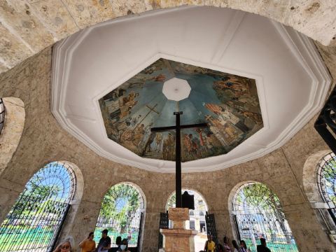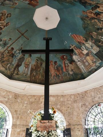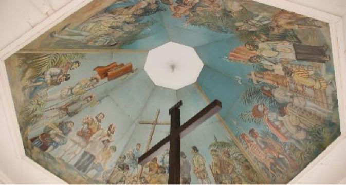 六角形小教堂的天花板壁画,仍保留着当年的原貌,十字架顶头逼真的天花板壁画颇具观赏价值。宿雾人非常信奉并尊敬这个深具历史及文化意义的十字架,每逢星期日的早上,便有无数的善男信女带备香烛前来虔诚地祈求平安好运。