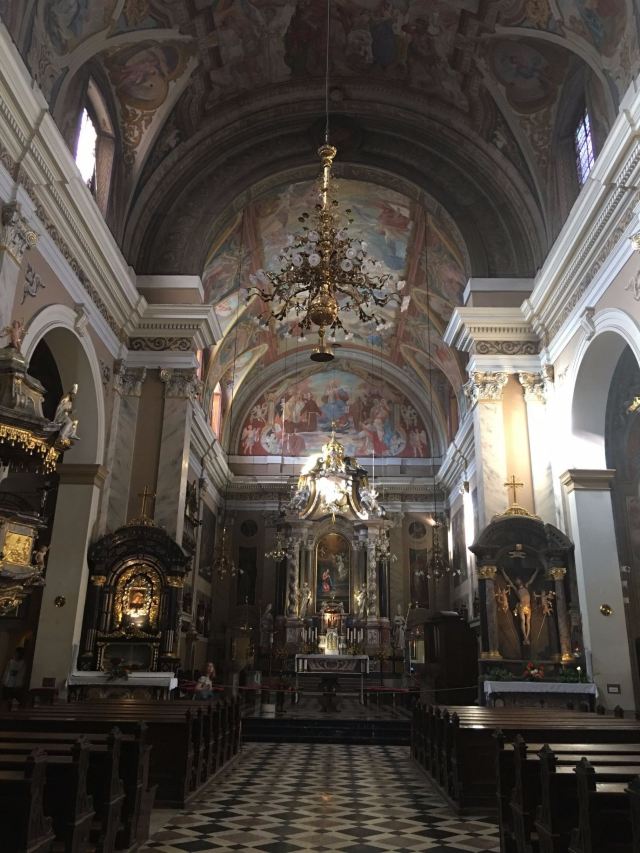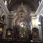 圣尼古拉斯大教堂始建于1262年,原先是一座罗马风格的教堂,于1361年毁于火灾。现在的教堂重建于1708年,双塔为绿顶,装饰有粉红色的雕饰,美轮美奂。外墙上装饰有着精美的壁画,庄严肃穆,让人震撼。