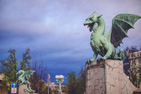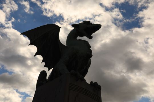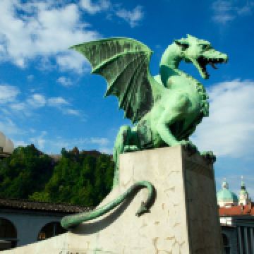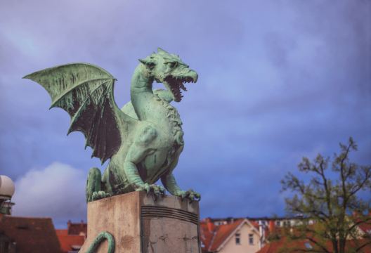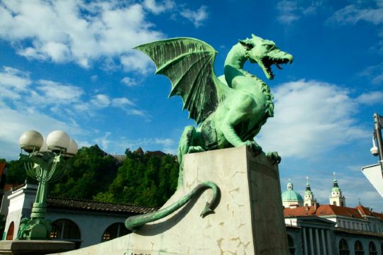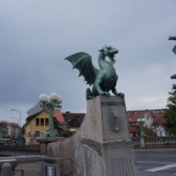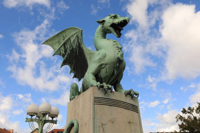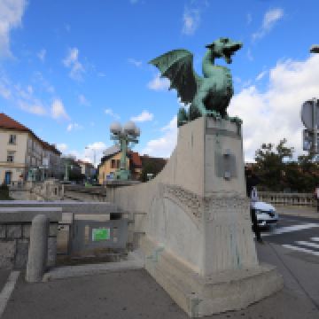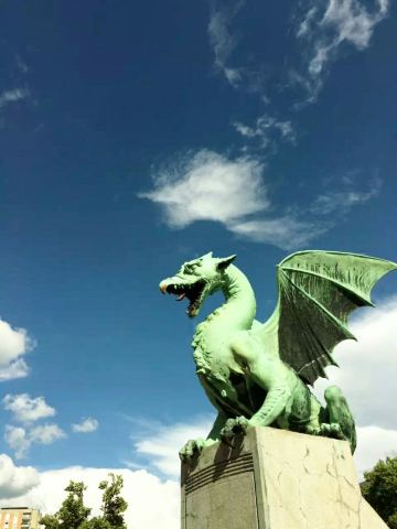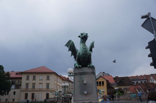 龙桥非常精彩的装饰就是两端桥头雕塑的四只青铜翼龙了,整个造型就是西方卡通故事中张牙舞爪、口中喷火的形象,而街边小店里出售的公仔、T恤、明信片大都是它的形象,如今这个形象几乎代表了卢布尔雅那。