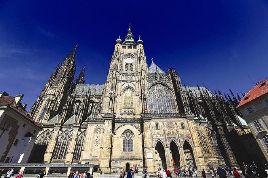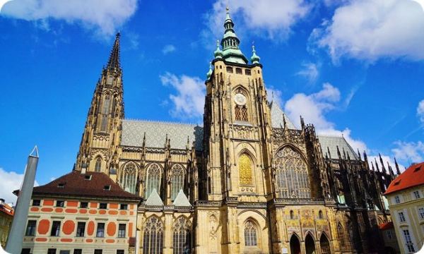 圣维特大教堂矗立在伏尔塔瓦河畔,教堂的尖塔耸峙云际,兴建于哥特式晚期的1407年-1438年,后来经过整修。1995年被列为国家文化古迹。