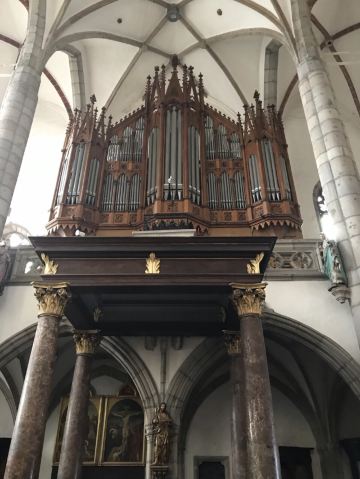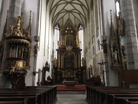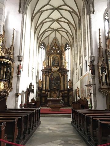 推荐理由:这座教堂与位于布拉格的圣维特教堂⛪️重名,是克鲁姆洛夫小镇上唯一的教堂、整个小镇基本各个地方都能看到教堂的塔尖。教堂是是一座融合了哥特式和巴洛克式风格的建筑。整个教堂并不大,走一走看一看可能也就二十分钟的样子,教堂内部基本一眼就看完了。有一个挺大的管风琴,是一七一六年制作的管风琴,还挺喜欢看这种很有历史比较古老的东西~很有感觉。教堂里有十五世纪的壁画,可以停下脚步慢慢看~石柱上有不少人物雕像,可以细细欣赏,都还蛮有感觉的。