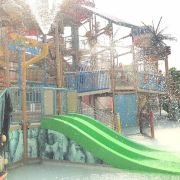 - 乐园的环境依照热带雨林原版打造,各种惊险刺激的滑梯埋藏在树林里,穿行其间有种丛林飞越的感觉。
