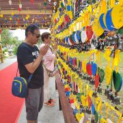 接着进入正殿,有很多小的观音像以及世间各种观音。圣观音,送子观音,杨柳观音 等等。在工作人员的引导下,我们可以去到7楼顶端,顺时针在观音像脚底祈福,然后抱抱观音像脚趾 再次祈愿。基本上这一套行程结束,就到了吃饭时间了。