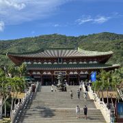 南山寺占地面积400亩,面朝南海,坐落于南山山腰。鉴真时期为唐朝,南山寺也是仿照唐朝建造的寺庙。
