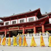 南山寺位于海南三亚南山文化旅游区,是一座仿古盛唐风格的寺院。这座寺庙的规模很大,整体气势恢宏。寺院建有仁王殿、大雄宝殿、东西配殿、钟鼓楼、转轮藏等,分别供奉门神哼哈二将、释迦牟尼佛、阿弥陀佛和药师佛、十六罗汉。