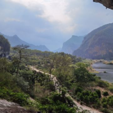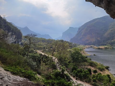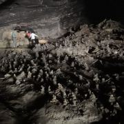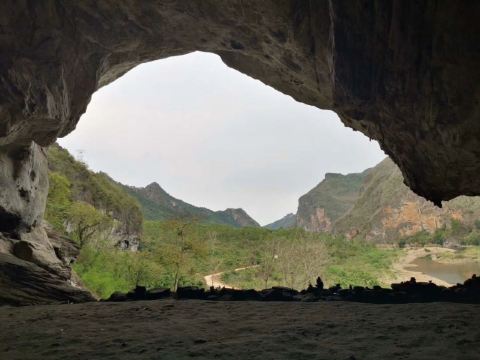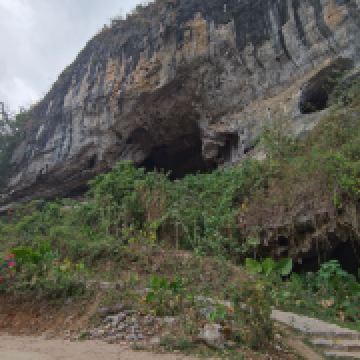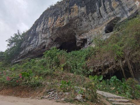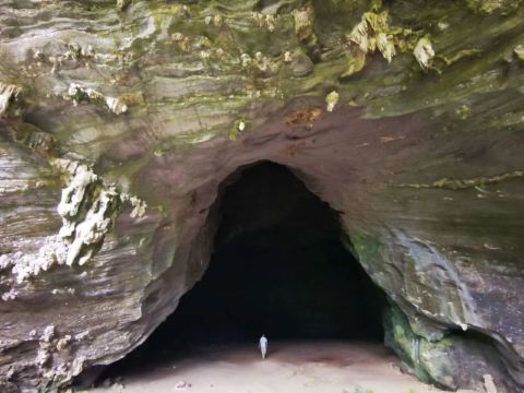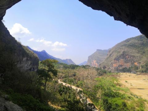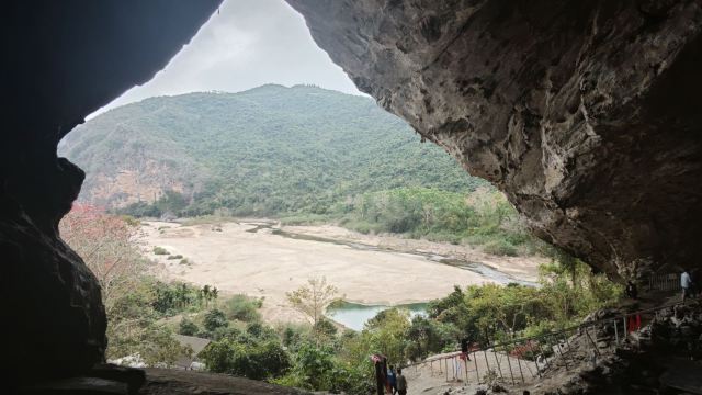 洞口就在南瑶河边,从远处眺望,象一头张开嘴的大水牛。洞宽约60米,深约130米,高25米,面积约7800平方米,洞厅呈拱形,平坦宽敞,可容纳上万人。