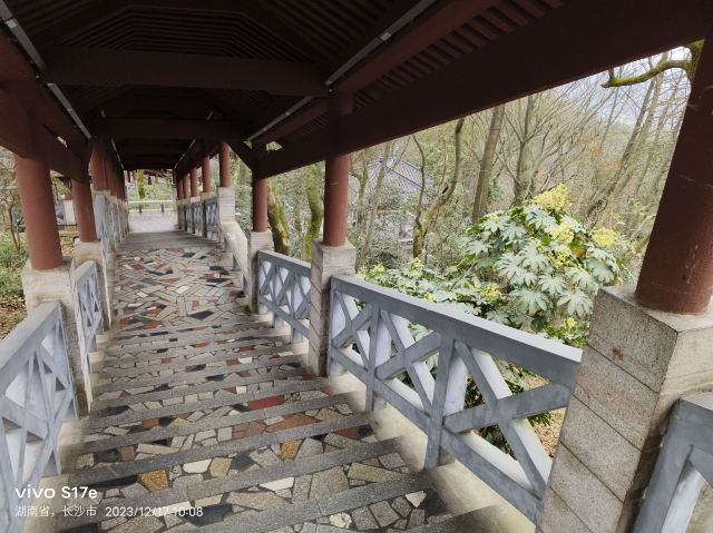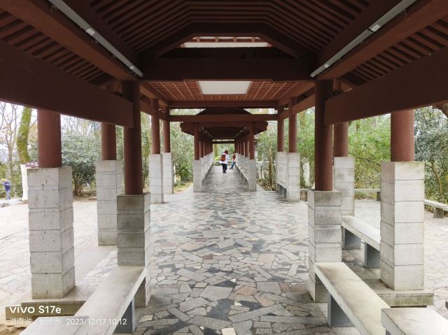 观光长廊坐落在岳麓山脊中部,全长140米,集休闲、娱乐、登高揽胜为一体。