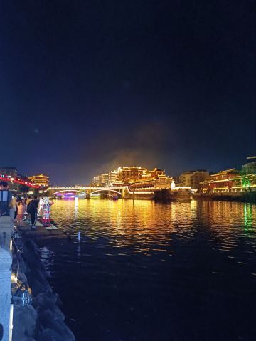 从惠吉门码头出发,我乘坐着画舫,缓缓驶入汀江的怀抱。江面波光粼粼,两岸的灯光与天空中的星辰交相辉映,仿佛置身于一幅流动的画卷之中。随着画舫的行进,我逐一领略了宋慈画舫的文化韵味、济川门的雄伟壮观、龙潭公园的静谧美丽,以及母亲缘广场的温馨氛围。