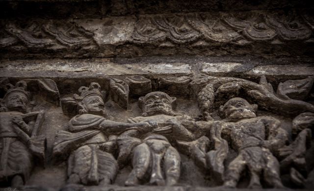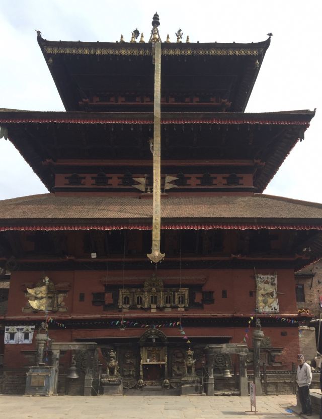 神庙主体高两层,庙外用加德满都谷地中样式最好的石雕、木刻、金属手工制品装饰,显得金碧辉煌,古朴大气。庙内主要供奉调和之神——毗湿奴神及其十种化身。神庙周围可以买到尼泊尔最好的木雕。