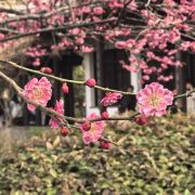 非常空旷,也有红梅树群 抬头就可以近距离看到天宁寺全景