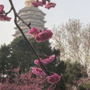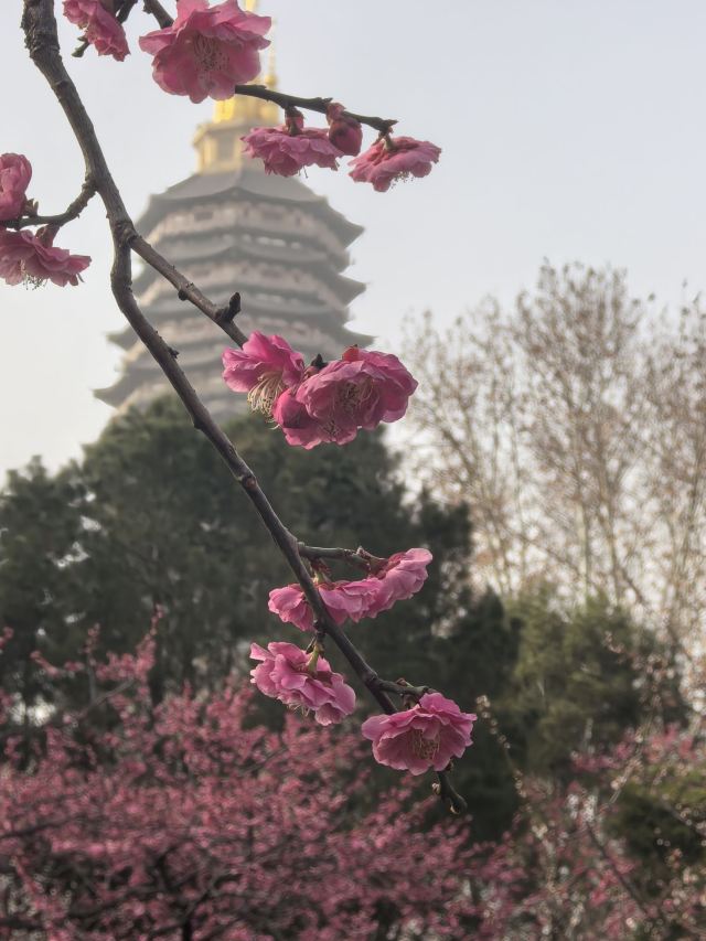 塔下也有盛开的红梅 同在一个画面下拍摄构图完美!