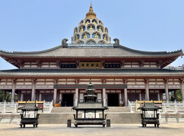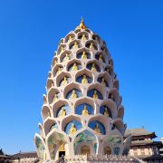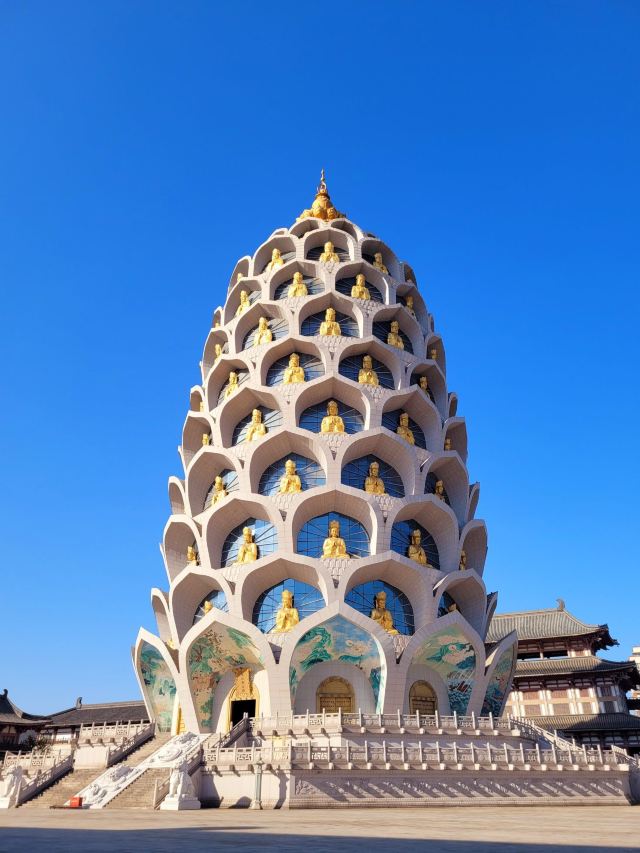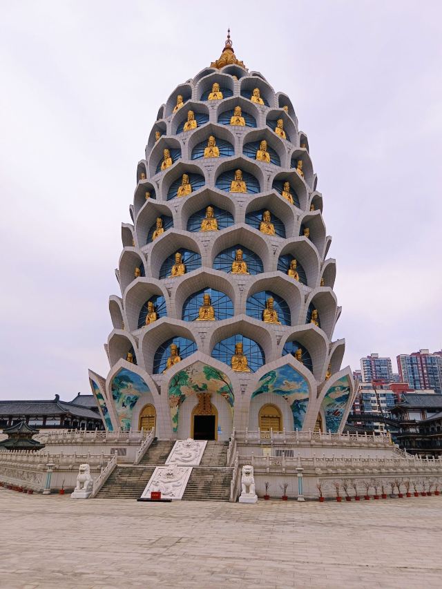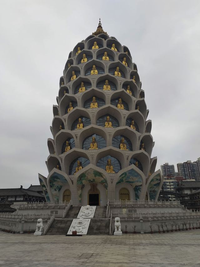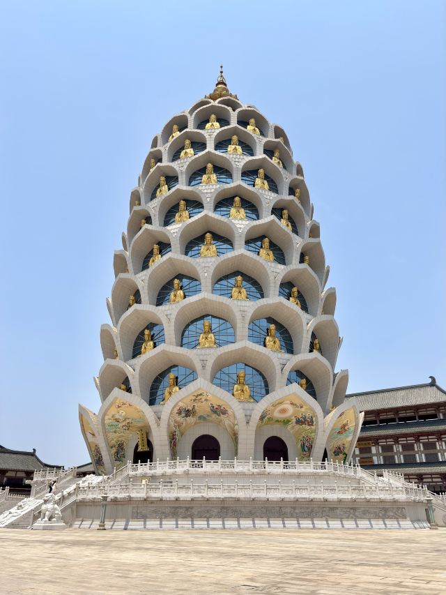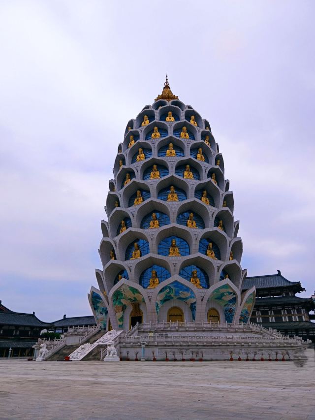 4分 满意在淹城景区附近的一个寺庙,宝塔造型很特别,非常壮观
