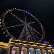 环球港龙眼摩天轮坐落于繁华的城市中心,是一处集观光、娱乐和休闲于一体的现代化景区。作为城市天际线的一部分,这座摩天轮不仅是建筑奇观,更是游客体验城市全景的理想之地。摩天轮的设计灵感源自龙眼,象征着吉祥与繁荣,乘坐其中,游客可以在缓缓升空的过程中,360度俯瞰城市的壮丽景色,尤其在夜晚,城市灯火辉煌,令人流连忘返。