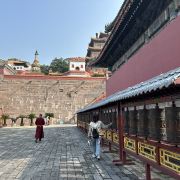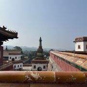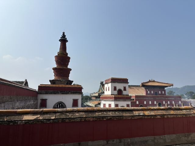 普宁寺的规模很大,纵深约有250米左右,宽约有130米,在寺内步行参观大约需要2小时左右。寺院的建筑十分独特,前院内均是汉式建筑,这里有传统的中式山门、天王殿、配殿和大雄宝殿等建筑。而后院则是典型的藏式建筑,以壮观的普宁寺-大乘之阁为中心,有一群仿造西藏有名的桑耶寺而建的建筑,在这里可以看到白墙红顶的藏式楼宇,可以参观拍照。