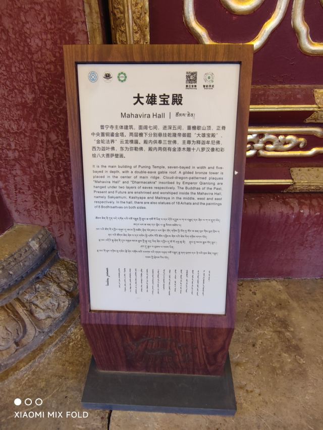 另外,普宁寺的殿东侧有普佑寺,是其附属寺院,就位于它院内,门票也包含在其门票内,可以一并步行参观。