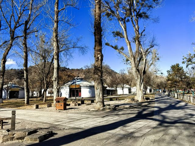 万树园地势开阔,草木茂盛,景色宜人。园内有大片的草原和成片的树林,春夏时节绿草如茵,野花点缀其间,秋冬时节则呈现出金黄的草原风光,四季景色各异,充满了自然之美。这里的生态环境保存较好,给人一种回归自然的感觉。