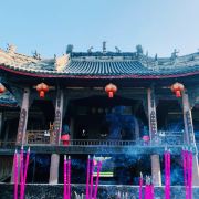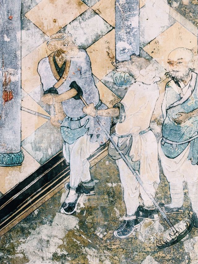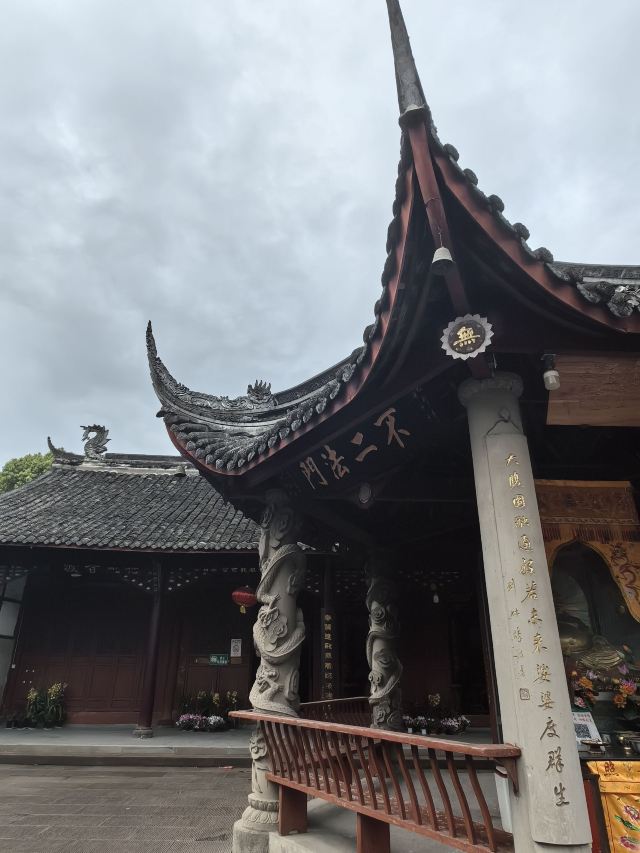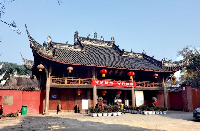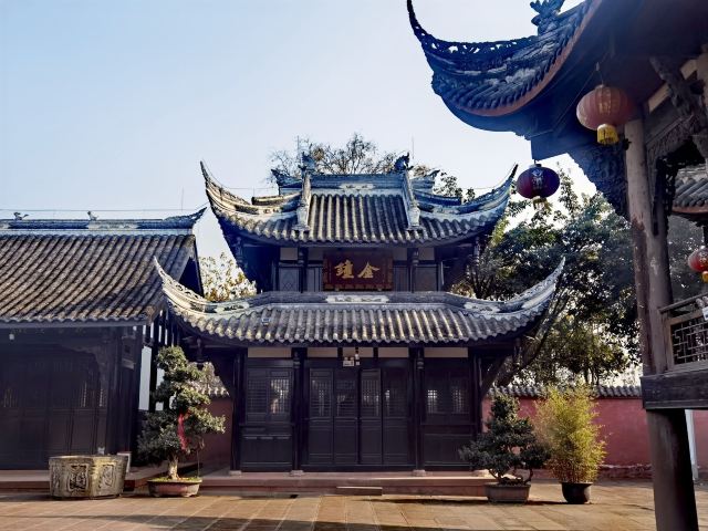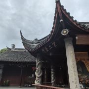 3分 不错“大隐隐于市,小隐隐于野”,金华寺就是这样一个奇特所在。位于金牛与新都交界处,车水马龙的立交桥就在旁边,这个古庙像被人遗忘一般,静静伫立。直接说看点:1.明清建筑。门口的石鼓是明末的,张献忠那王八屠成都时烧了庙,但石头烧不烂,留了下来,建筑清乾隆年间修筑,保存较为完好,特别是庙门背后的戏台,“观今鉴古”,没有蓝脸的窦尔敦、红脸的关公,依然带有一丝古韵。2.清代壁画。在大雄宝殿的正门左右侧,我居然看到了孙猴子和猪八八,西游记题材的壁画并不少,但大多毁了,所以还是算少见,这幅画工细腻,猴子灵动逼真,高老庄驸马就太瘦了,那不是真正的它,画中三藏牵着位文官的手,看不出是哪一集。