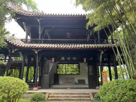 5分 超棒吟诗楼是唐代女诗人薛涛晚年在成都城西碧鸡坊为吟诗而建,但该楼早已不存。后人两度在此建吟诗楼,以资凭吊这位蜀中才女。现在的吟诗楼位于武侯区望江楼公园文物保护区内,下层厅堂装点有一组薛涛与当时的著名诗人元稹、白居易、杜牧、刘禹锡等吟诗作赋的“神交”意象图。望江楼公园是成都知名的免费公园,人气很旺,位于成都东门外九眼桥下3里许,濒临锦江,紧靠四川大学,是拍摄市区夕阳的绝佳之地。总体来说值得前往,这里免费开放,而且现在公园已经破墙了,24小时开放的休闲公园,这里没有宽窄巷子、锦里的人山人海,取而代之的是难得的宁静和悠闲。推荐路线:从公园正门进入,依次游览望江楼、吟诗楼、濯锦楼、薛涛井、薛涛像,再按原路返回,2小时参观完全足够。