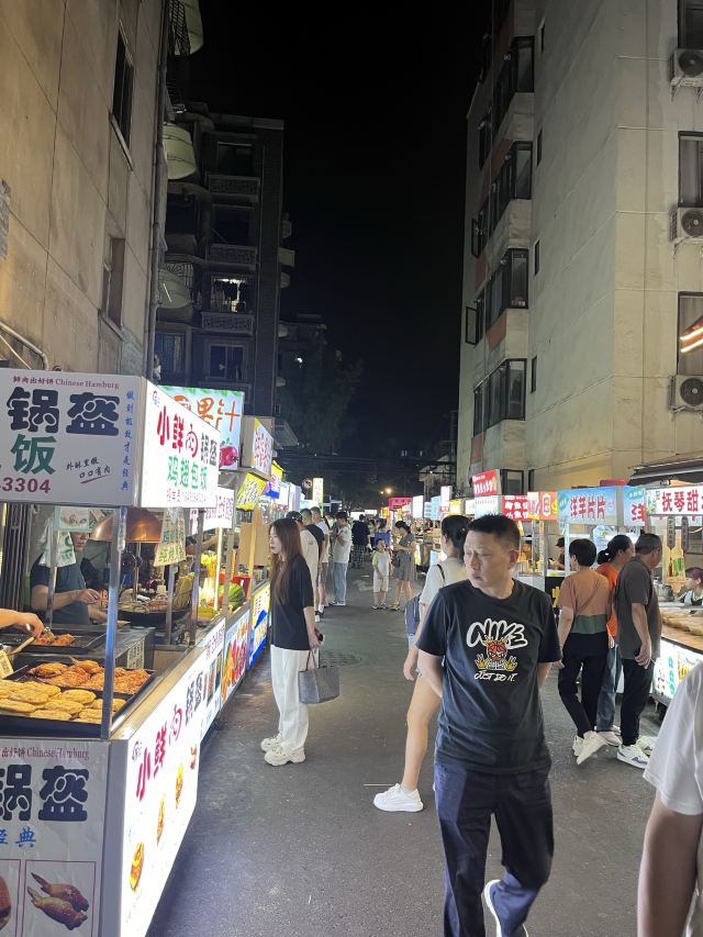 夜市范围相对算大,在抚琴西南街、抚琴街南一巷和抚琴街北一巷,周边小巷也有很多小吃摊和店铺。各种小吃无所不包,烤虾慕名而来确实好吃,烤苕皮一如既往地不失望,椰子蛋排队的人太多而没买到,烧烤店座无虚席,有些巷子人多的走不动路,来到这里就有很多想吃的,只可惜胃太小,美食还是要慢慢尝。