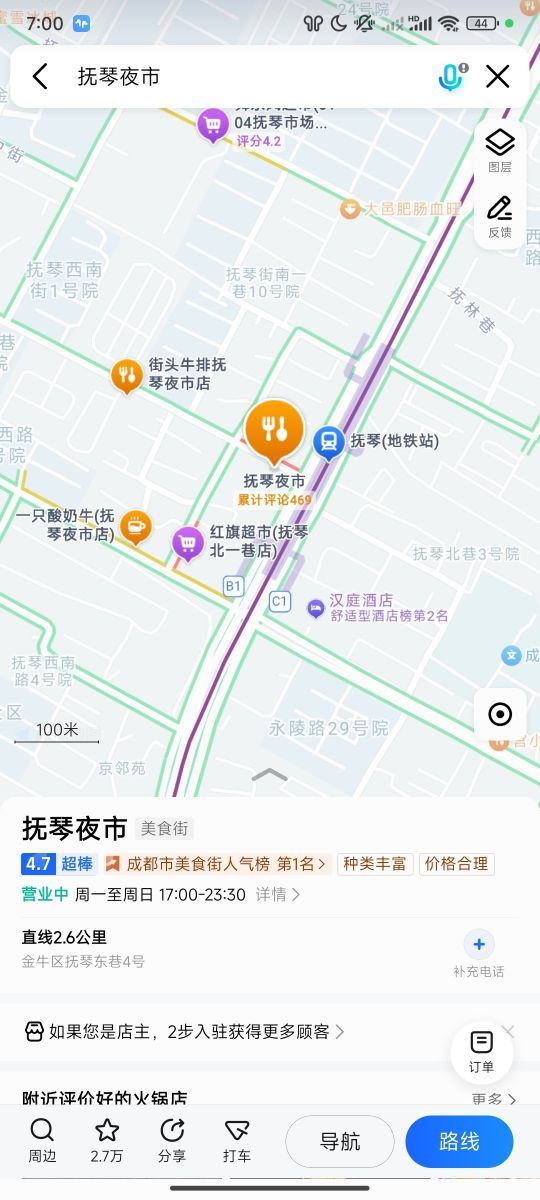 5分 超棒四川美食非常多,干净卫生,街道有文化氛围,值得一去,我住在抚琴夜市对面如家,很方便。