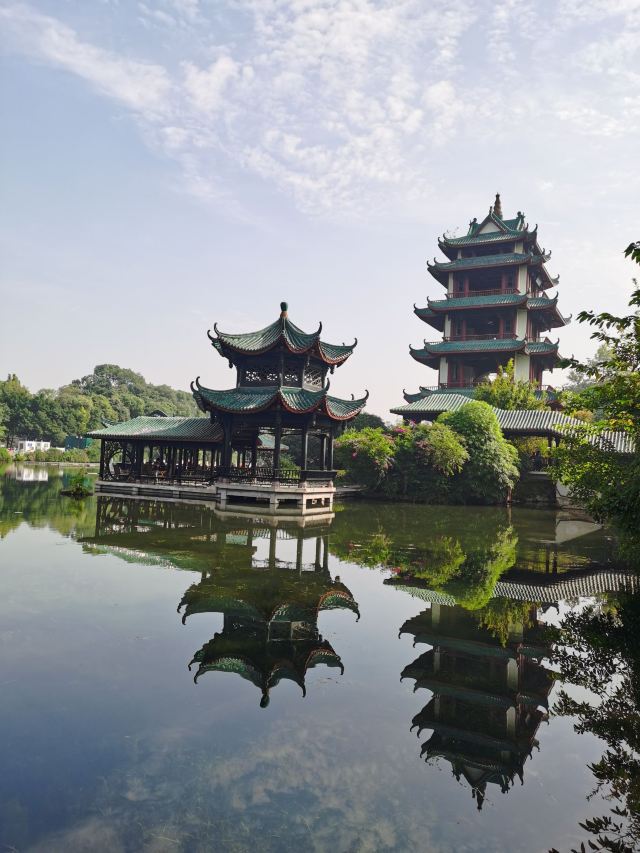 桂湖小巧玲珑,湖畔有杨柳楼、澄心阁、香世界、抗秋、绿漪亭和成林的桂花树,每逢中秋时节,荷花满塘,桂蕊飘香,一年一度的桂花会在这里举办。