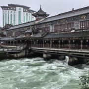 看松茂古道起点:都江堰西街为松茂古道起点,沿岷江上溯640里至松潘,在公元七世纪时就已是一条商贾云集的交通大动脉,国画大师董寿平的旧居隐逸其间。