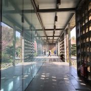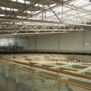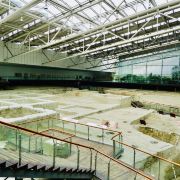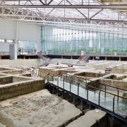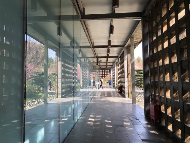 金沙遗址博物馆-遗迹馆呈半圆形,舒展平缓的弧形外观与室外清新纯净的景观环境逐渐过渡、融合,形成了连续的空间变化。馆内无立柱大空间的构造保证了祭祀遗迹的完整性,大跨度钢结构形式将建筑对文物本体的影响弱化,可持续的建筑设计把文物保护与生态保护相结合,为考古发掘和文物保护工作创造了良好的条件。