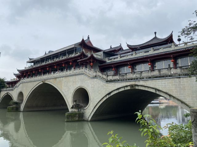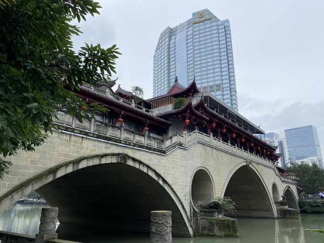 安顺廊桥,位于成都府河与南河交汇处的合江亭旁,这座桥有着悠久的历史,始建于元代,在马可·波罗的游记中,安顺廊桥是他印象中较为深刻的四座大桥之一。安顺廊桥曾经被洪水冲毁,2003年经过修复的安顺桥重新亮相。
