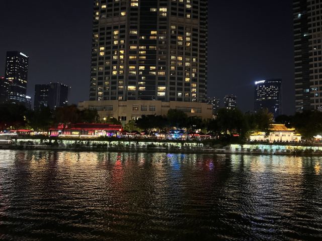 安顺廊桥至合江亭仅有300多米,又地处于市区2环内,两处景观夜景超赞,四周点点灯火和古建轮廓倒映河中非常漂亮,适合夜游。附近1公里左右还是成都酒吧汇聚地九眼桥,是成都夜生活的代言地。