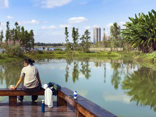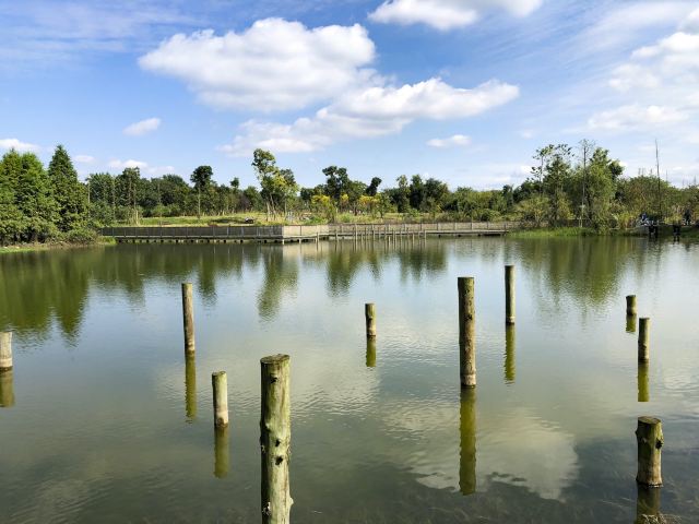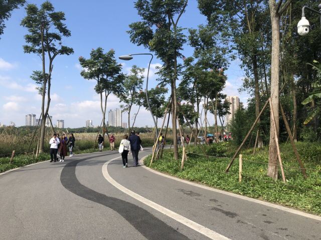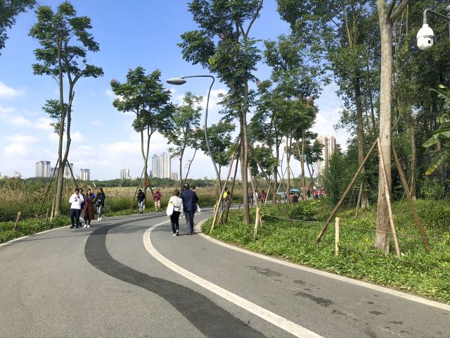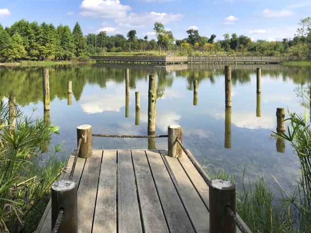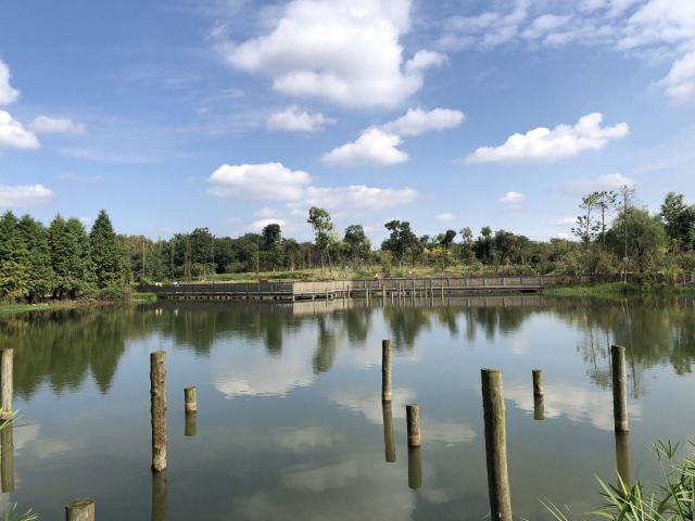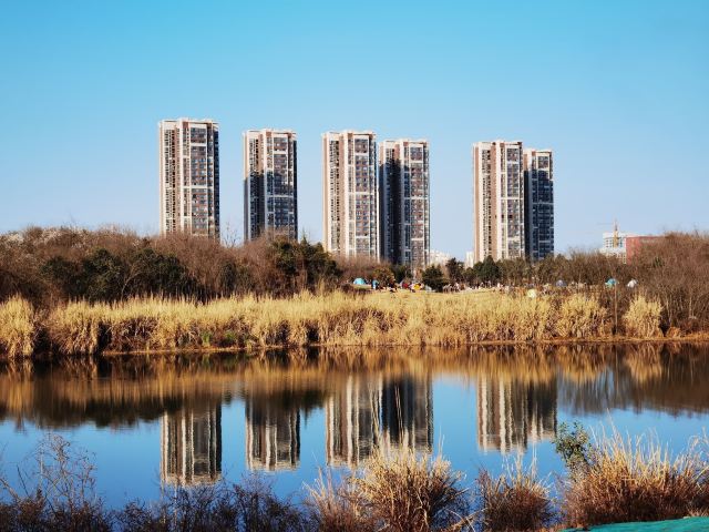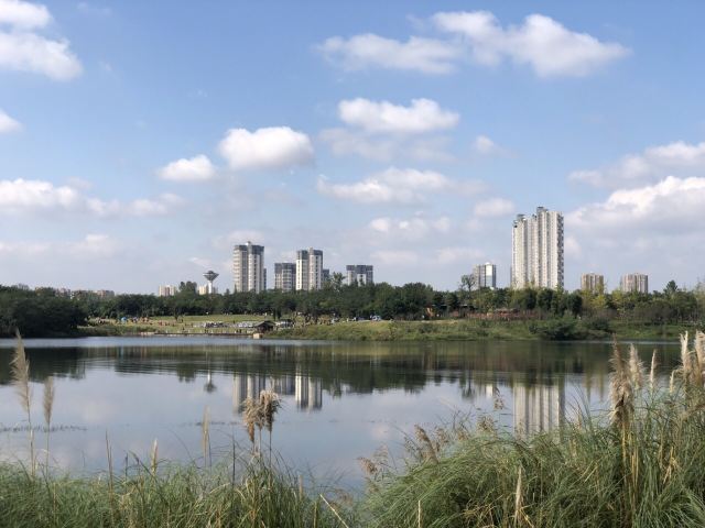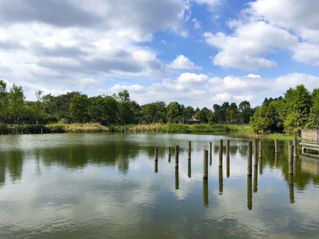 青龙湖位于成都市龙泉驿十陵风景区范围内,规划总面积超过1万亩,是成都环城生态区“六库八区”之一,在成都众多的湿地公园中,它被视为环城生态区的升级版。“春来樱花烂漫,夏季荷叶连天,秋日五彩斑斓,冬有傲梅斗雪”的四季美景。一期工程面积约4700亩,已向市民开放。一期工程在生态修复、自然保护和文化传承等方面采取了积极探索和生态实践,基本实现了“生态、民生、旅游”的复合功能,呈现出了人与自然和谐相处的生态文化景观,成为了广大游客亲水观景的一处胜地。