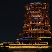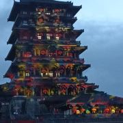天汉楼主楼为外七层内九层五层檐,建筑为69米高的仿汉风格和汉中传统建筑高翘屋檐相融合的汉代楼阁。
