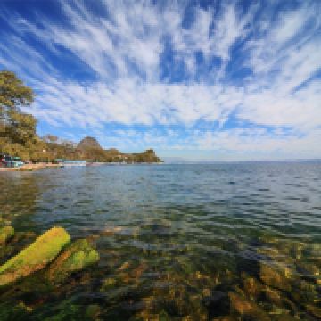 抚仙湖位于澄江县以南5公里处,它被视为昆明人的后花园。抚仙湖虽不如滇池、洱海出名,但它是中国的深水型淡水湖泊,相当于12个滇池,6倍的洱海。这里可以欣赏到相当清澈的湖水,用“天空之境”来形容也毫不夸张。