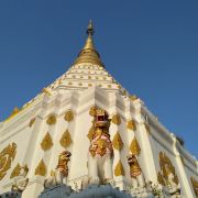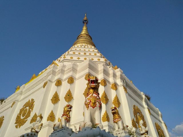 5分 超棒清韵寺跟古城里面的寺庙不同,这个寺庙是白色的外墙,顶部是尖尖的,而且是金色的,主要还是它的外观是八角型,塔身很高,看上去感觉很雄伟的感觉。这座寺庙距离古城不算远,基本在清迈都会遇到座寺庙,进寺庙都需要脱鞋的。
