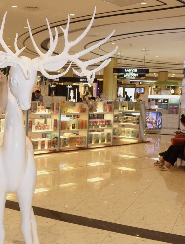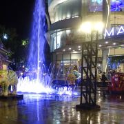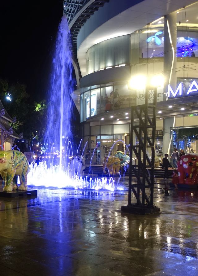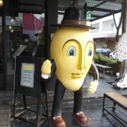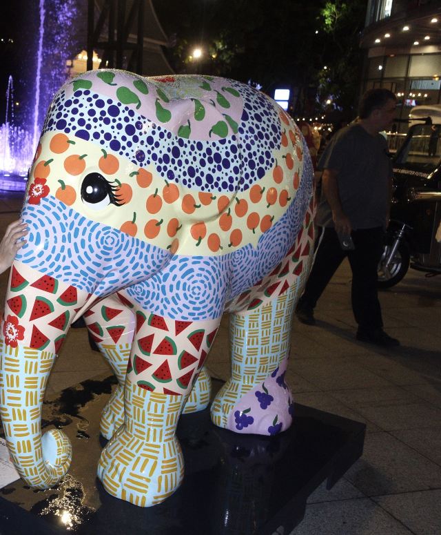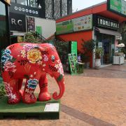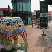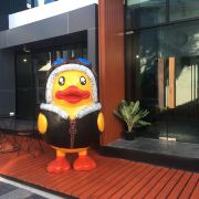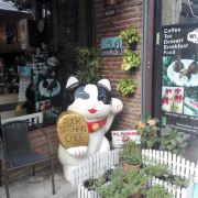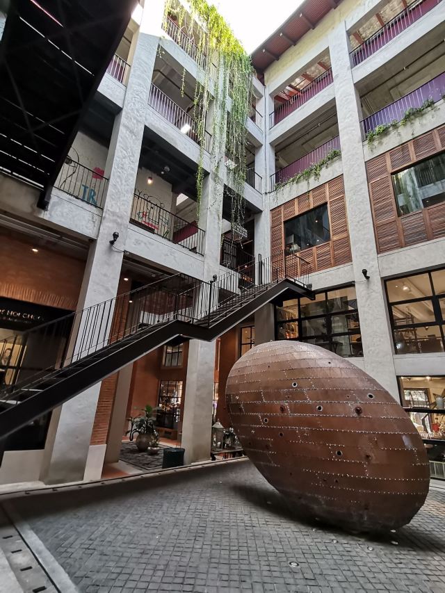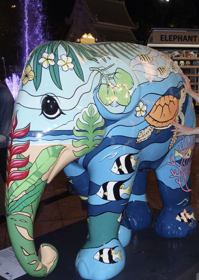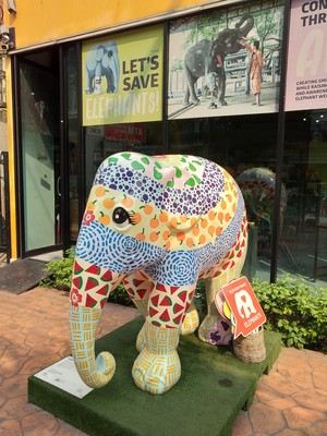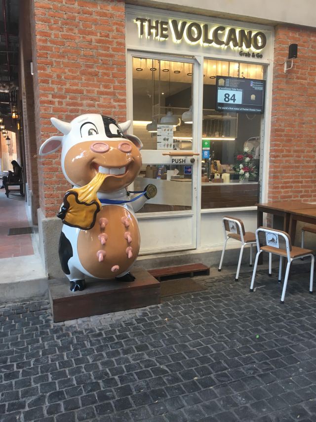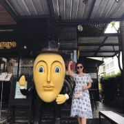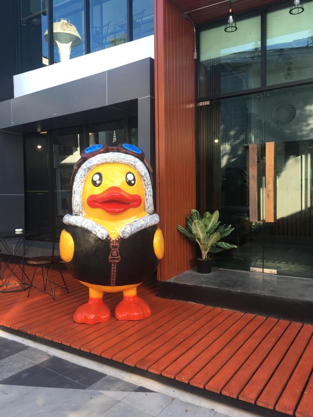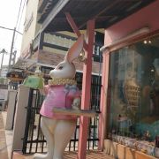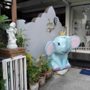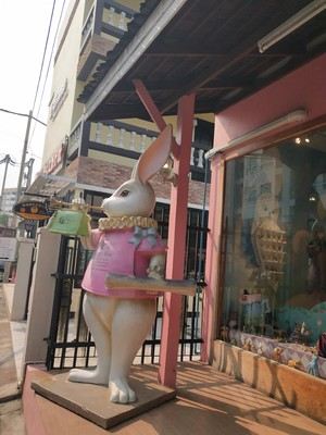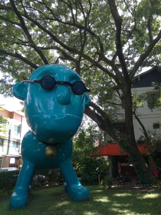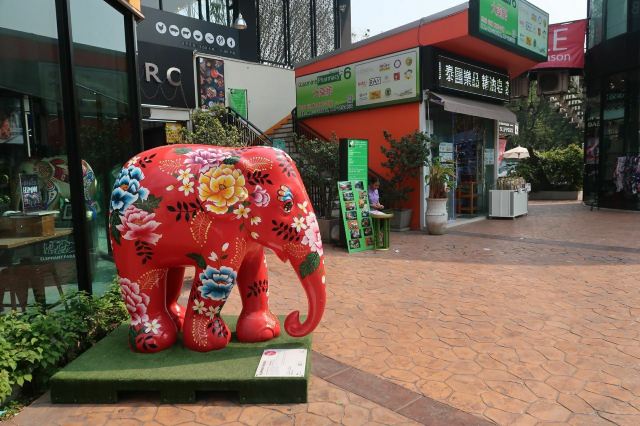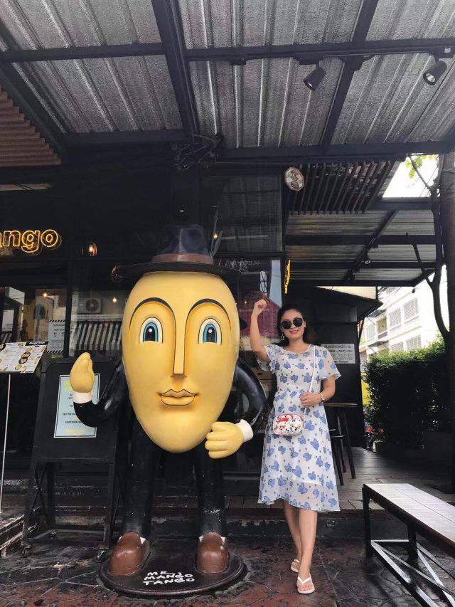 整个街区里汇集了很多风格的建筑,有欧式的、有传统东南亚风格的,街道上时不时的还会出现泰国人信仰的四面佛。但是,较吸引人眼球的还是很多彩色雕塑,它们都以所属店家的主题为设计灵感,比如这个餐厅如果以猫为名字,那么店铺前就会出现一只巨大的猫造型雕塑。一路走,你还会发现小鹿、恐龙等,很多游客都会与它们合影留念。