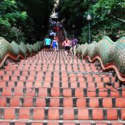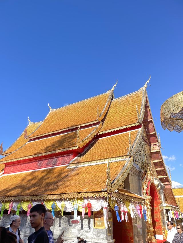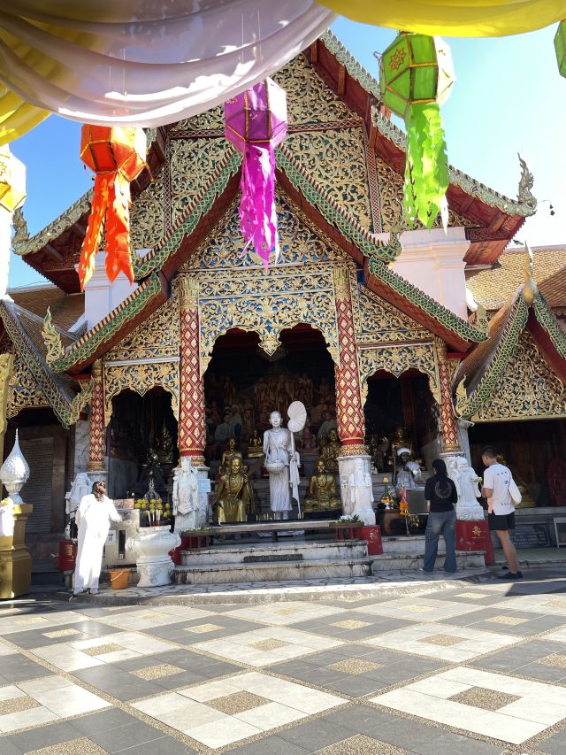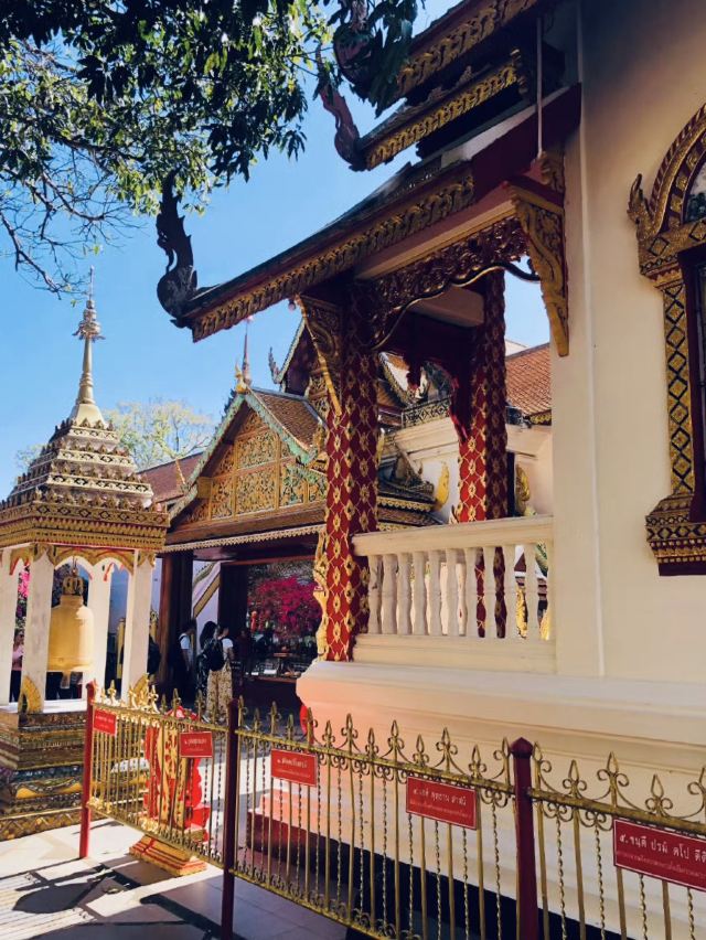 参观清迈的双龙寺游览素贴山多是为了参观山腰的双龙寺(也叫素贴寺)。寺庙建在高台上,要从寺前的300多级台阶走上去,台阶两旁的栏杆是两条几十米长的彩色多头神龙,造型奇特。寺中金碧辉煌的佛像、贴满金箔的舍利塔等都是很值得一看的景观。主殿后面就是可以俯瞰清迈古城全景的观景台。欣赏典型的泰式建筑蒲屏皇宫参观双龙寺后,往西有蒲屏皇宫,不过两地相距4公里以上的路程。蒲屏皇宫是典型的泰式建筑,白墙黄瓦、格调雅致。每年12月-1月,这里异常凉爽。1月-3月泰国王室成员会来此居住,其他月份游客可以参观,花园每天开放,而宫殿内部只在周末和节假日开放。园内草木葱郁,并种有玫瑰、鼠尾草等植物,景色美不胜收。周边游玩选择出了蒲屏皇宫继续往西北边去,那里还有一个村落,但较少有游客会再深入过去。在素贴山下,清迈大学旁边是清迈动物园,附近有宁曼路艺术街区,而在山的南边脚下还有清迈夜间野生动物园。你可以好好计划一下,在这片区域游玩一整天。