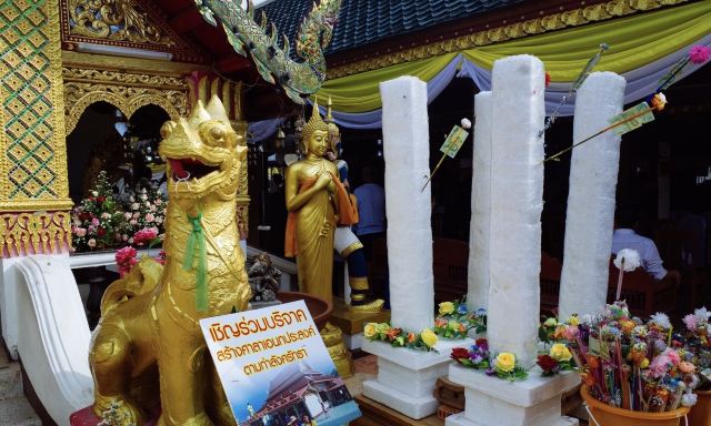 来康佛寺,至今已有1300多年历史。寺庙建立于佛历1230年(公元687年),是由跟兰纳王国同时期的孟族哈利班超王国(Haripunjaya,首都在现今的南奔地区)的帕南差黛维女王(Phra Nang Chamthewi)的两位双胞胎王子共同修建。来康佛寺也有着一个超大的观景台,可以俯瞰整个清迈城。也有些虔诚的信众会从位于观景平台的山道入口,一路从山脚下步行上来。