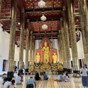总体来说寺庙的面积还算较大,有主殿、小佛殿、僧房。主殿内挂满了信徒及游客们的福条,花上100泰铢求一个福条,你可以在上面写上祝福的话。寺内还有图书馆、博物馆和僧侣学校,几乎每天你都可以看到穿着橘色长袍的僧人拿着厚厚的书本从僧舍内出来,坐在菩提树下静静地阅读。有时候一些外国游客还会坐下来和他们小声交谈,一边说一边做笔记,探讨一些关于人生哲学的话。