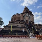 微信小程序契迪龙寺是清迈古城内的寺庙,位于古城的中心位置,入口在帕抛拷路(Prapokkloa RD)上一条小巷内,巷口很窄,完全想象不到里面藏着一座如此恢宏的建筑。