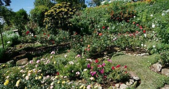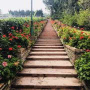 来到一个方形水池前,便是5号景点——带有音乐喷泉的水库。从旁边的山坡往上爬,可以登高俯瞰水库,还能欣赏到阶梯形的花坛,宛如仙境。随后还能观赏到其他的宫殿建筑以及精致的玫瑰花圃、高耸的竹林等自然景观。
