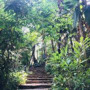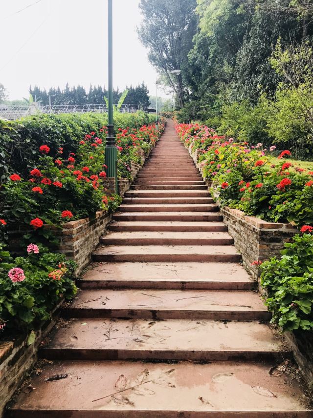 沿着曲径通幽的小山路继续走,像是进入了与世隔绝般的热带雨林,清新的空气令人舒畅。途中有很多花圃,可以看到许多你可能叫不出名字的热带花卉,五彩缤纷,非常惹人喜爱。