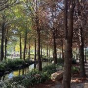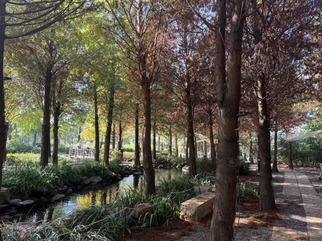 克里斯松林,与静池相连,由河水、森木环绕而成,是一处如欧式童话般的梦幻森林,森林育有蓊郁的落羽松,漫飞的羽叶纷落而下,织合成一片澄黄的辽阔秘境,不论悠心漫步或欢笑奔跑,克里斯松林都会是之佳好选择。