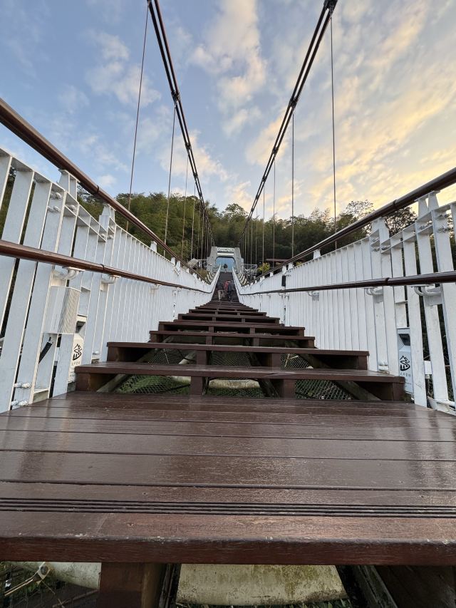 踏上太平云梯,可以感受到山间清风拂面,视野开阔无遮。无论是晴空万里还是云雾缭绕,它都呈现出不同的美景。晴天时,可以远眺嘉南平原的广袤大地,村落稻田尽收眼底;云雾弥漫时,桥身仿佛悬浮云端,让人仿佛步入仙境。太平云梯的设计也十分人性化,桥面采用木栈板,既安全又方便行走。桥中央的镂空铁架设计,让游客可以透过铁架俯瞰脚下的绿野,增添了探险的趣味。周围茶山的翠绿与天际的蓝色交相辉映,为游客带来一场视觉盛宴。