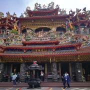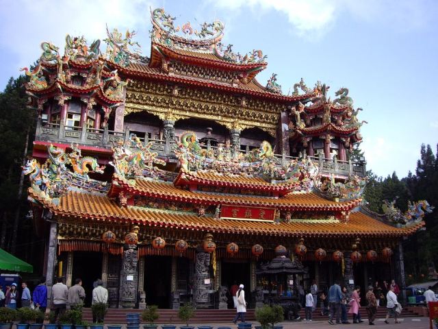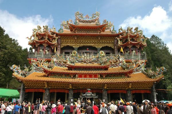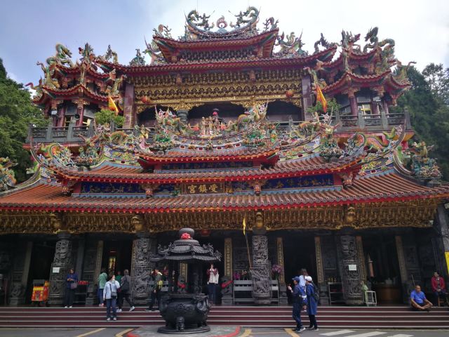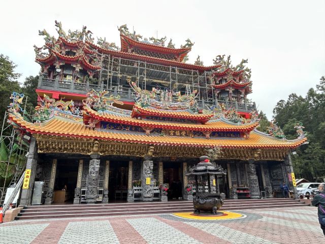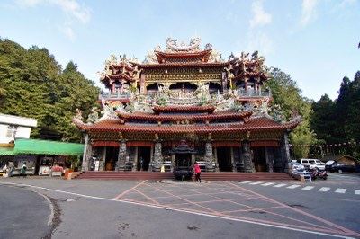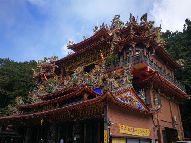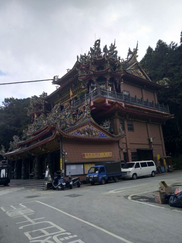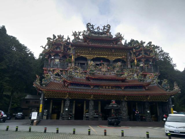 5分 超棒爬阿里山,一路向上就来到了一个平台,一个大广场正面就是受镇宫,一座非常壮观的寺庙!