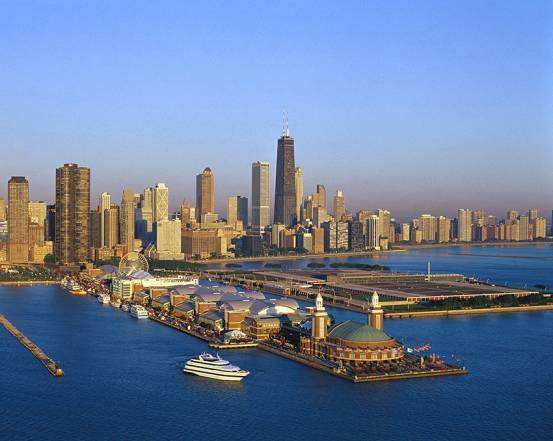 湖边的超大游乐场,占地五十公顷,从公园、商店到餐厅、景点,应有尽有。可以登上摩天轮一览美景,也可以去玩一玩旋转木马、空中秋千、迷你高尔夫等等。码头还有芝加哥儿童博物馆(Chicago Children's Museum)、芝加哥海军码头莎士比亚剧院(Chicago Shakespeare Theater)和IMAX剧院。