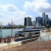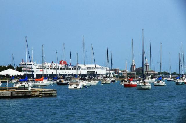 而在码头南侧入口处还有观光游船,可在此买票上船,在船上欣赏密歇根湖的美景。夜晚,在码头的步道边绵延不断地分布着许多露天酒吧和咖啡座。玩累了,可以随意的找一家坐坐,边欣赏密歇根湖的美景,边品尝一杯咖啡或啤酒,更可以抬头看夜幕中,灯光璀璨的摩天轮。