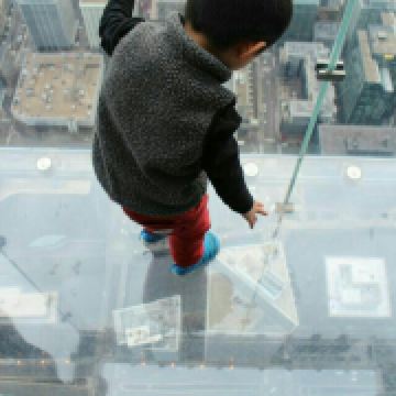 来到这里一定不能错过的就有站在玻璃天台上体验一把惊险刺激的感觉。2009年6月设计师增了4个玻璃天台,这4个玻璃天台全部建在大厦的西侧,向内部向外延伸了约1.2米。站在透明玻璃阳台上,脚下的城市街景一览无遗,但又心惊胆战。而且还可以看到旁边天台上的游客,有种悬在空中的感觉。当然有人站在上面,也有人蹲在玻璃上,甚至更有人躺在上面。