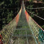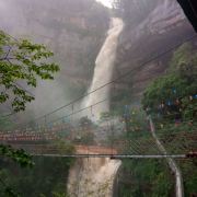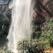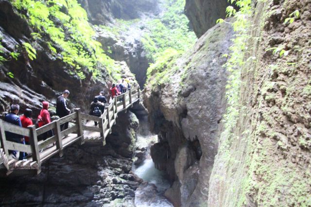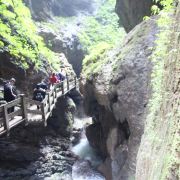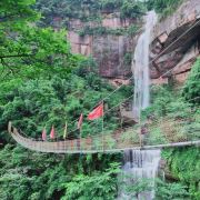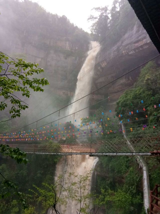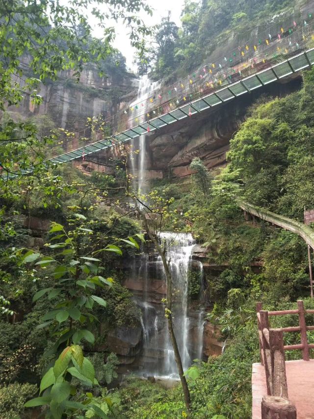 5分 超棒从景区大门到玻璃桥有大概一公里 买了票坐五六十米的滑索过到河的另一边 在滑索上看到 不远处有高空自行车 胆大的可以去体验 我就继续向前了 到走走看看到玻璃桥大概用了半个小时 有点小累 在玻璃桥上眺望青山绿水 后面瀑布的雨雾漂在身上凉飕飕的 会让人忘记旅途的劳累 有过玻璃桥 从瀑布后面的岩洞穿过 就到了景区的最高点 上山容易下山难 所以选择了坐旱滑道 儿时最美好的的记忆滑滑梯 这次终于不用跟小朋友抢着坐了 大概有两百多米的滑道很快就到了玻璃桥下面的观景平台 坐在皮划艇的高山漂流也是我的选择项目 七百多米长的水滑道直通景区大门口 水滑道有点刺激惊险 不过让人意犹未尽的感觉 到了景区大门买点土特产 这次旅途完美结束